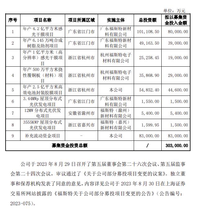 關(guān)于本次部分募投項目延期對公司的影響,福斯特表示,本次部分募投項目延期,是公司根據光伏膠膜海內外產(chǎn)能擴張緊迫度不同和撓性覆銅板業(yè)務(wù)開(kāi)展及產(chǎn)能建設節奏的實(shí)際情況做出的合理的戰略調整,部分延期的募投項目后續仍將繼續投入,不會(huì )對公司正常生產(chǎn)經(jīng)營(yíng)產(chǎn)生重大不利影響,符合公司發(fā)展戰略規劃安排和增強公司運營(yíng)資金實(shí)力,有利于提高募集資金的使用效率和未來(lái)收益,不存在損害公司及股東利益的情形。