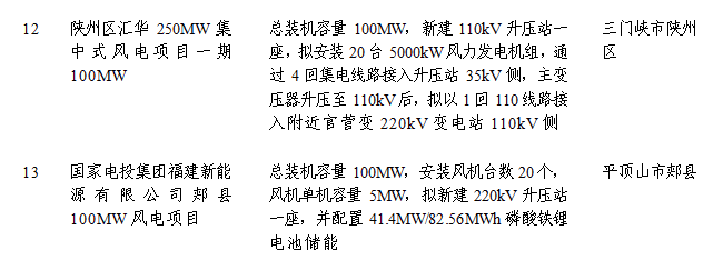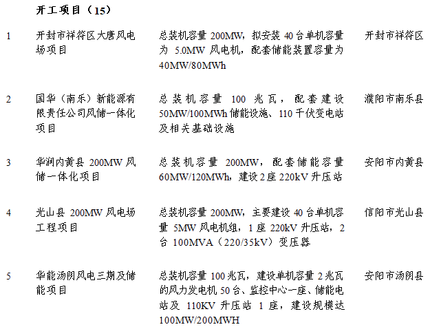 新能源項目具體名單: