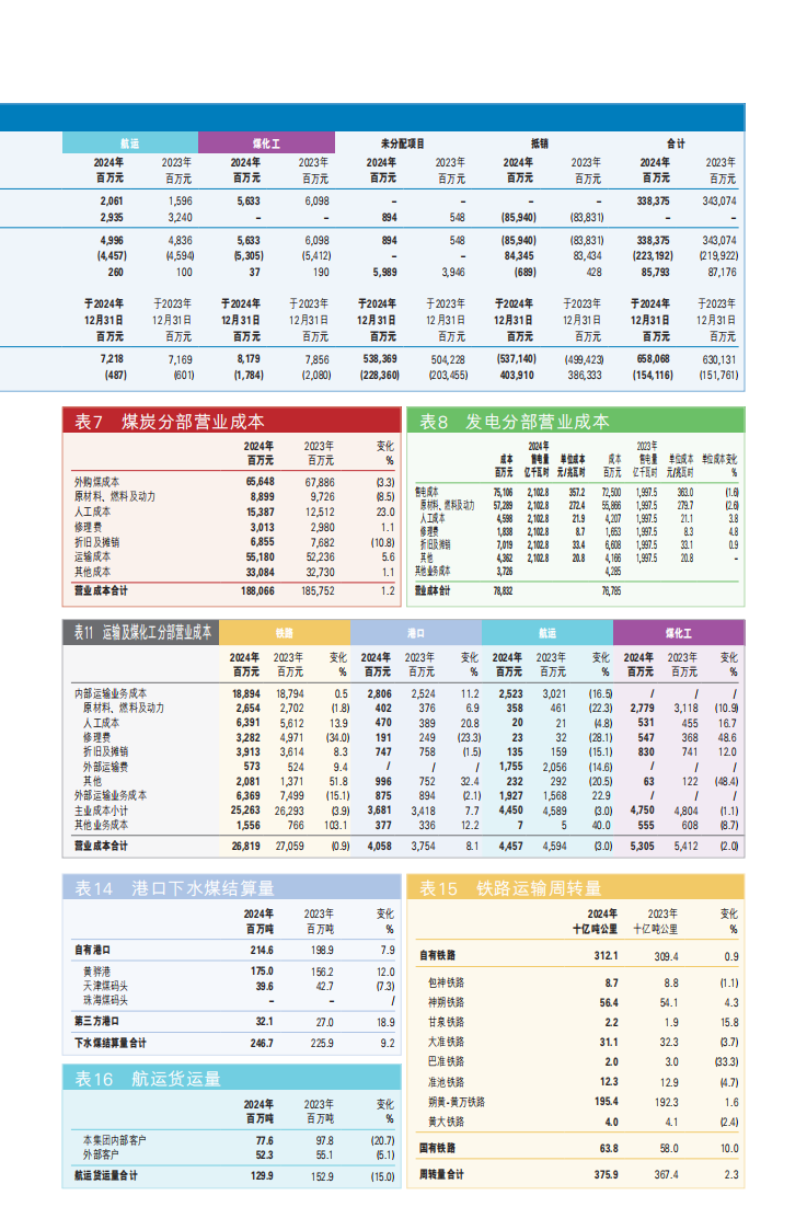 2024年,中國神華煤炭、發(fā)電、運輸及煤化工分部利潤總額(合并抵銷(xiāo)前)占比為67%、14%、19%和0%(2023年:71%、13%、16%和 0%)。那么,按利潤總額簡(jiǎn)單換算來(lái)看,神華賣(mài)煤一天大概能掙1.57個(gè)“小目標”,發(fā)電一天大概能掙0.328個(gè)“小目標”。